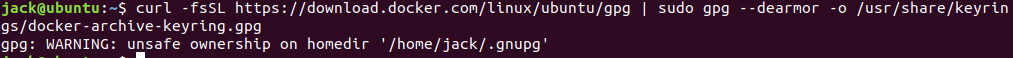 curl -fsSL https://download.docker.com/linux/ubuntu/gpg | sudo gpg --dearmor -o /usr/share/keyrings/docker-archive-keyring.gpg