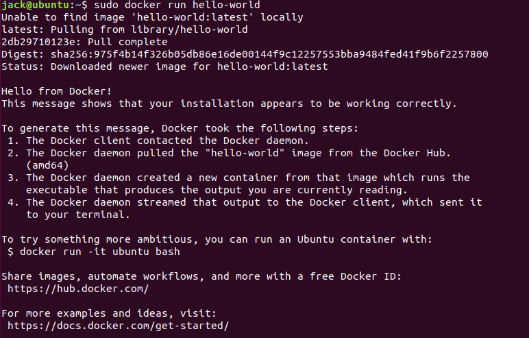 sudo apt-get install docker-ce docker-ce-cli containerd.io