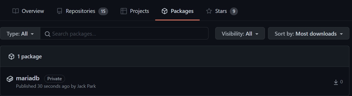 docker push ghcr.io/{github id}/mariadb:lts