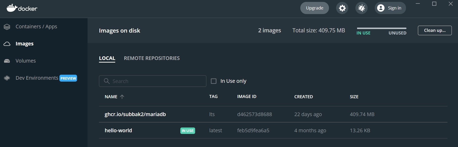 mariadb latest d462573d8688 3 weeks ago 410MB