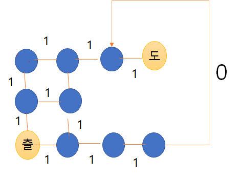 그림으로 설명하자면,아래 그림처럼 칸을 하나의 정점으로 보고,
