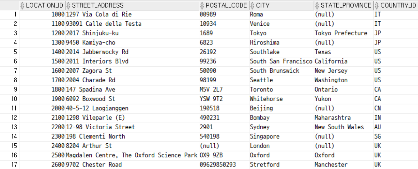 하나의 COUNTRY_ID (국가)에 있는 도시 종류를 한 눈에 보고싶다고 가정하자.