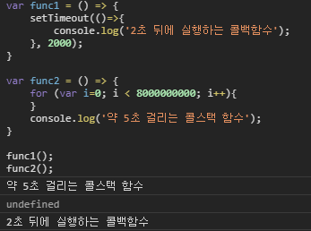 자바스크립트는 하나의 스레드로 1개의 동시성만 다루는 언어이며,